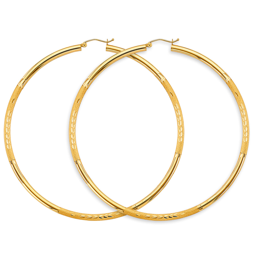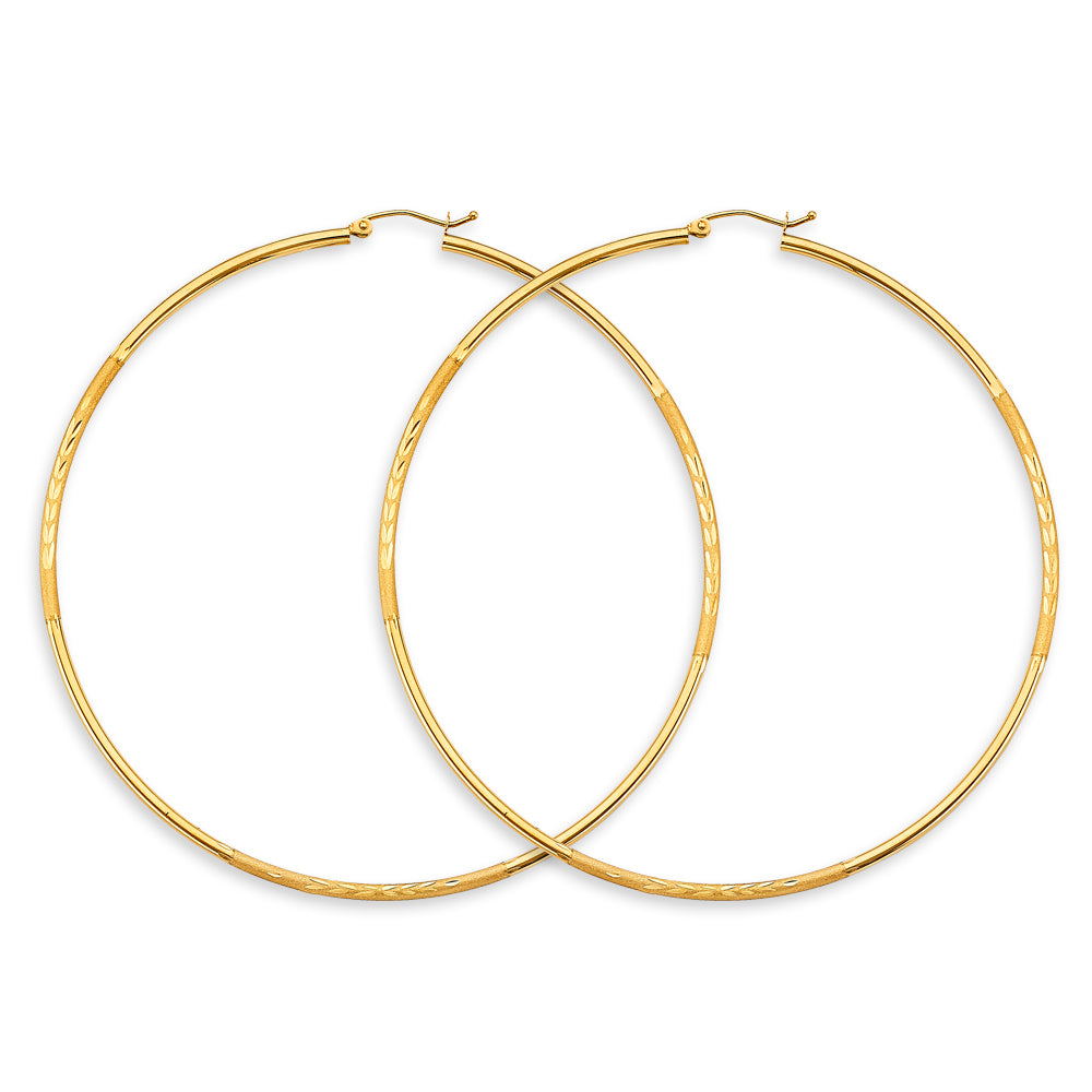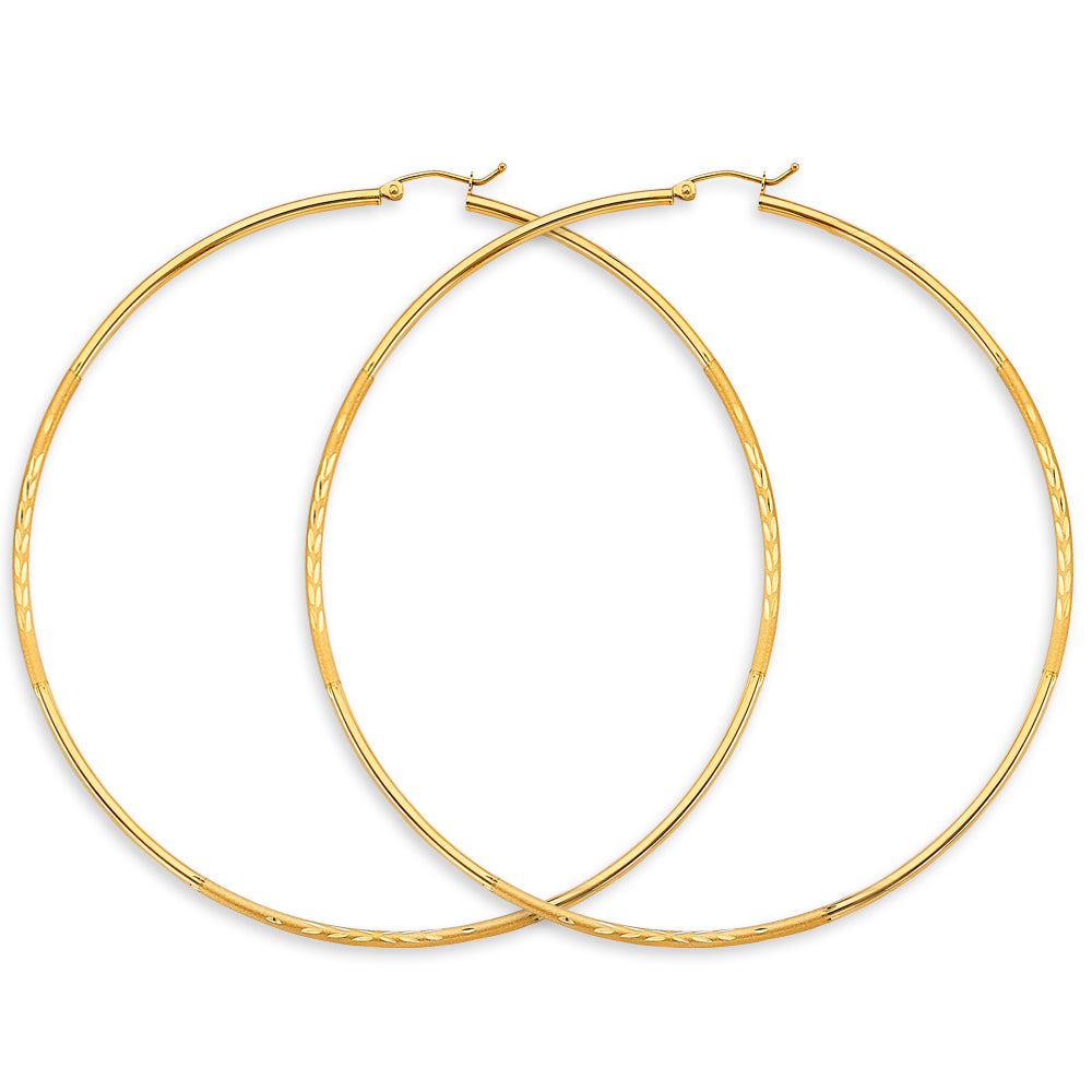 14KY 2mm Budded DC Big Round Tube Hoop Earrings (ER1730)