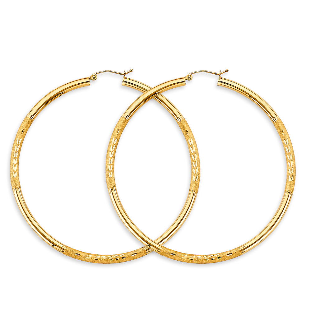 14KY 3mm Budded DC Big Round Tube Hoop Earrings (ER1735)