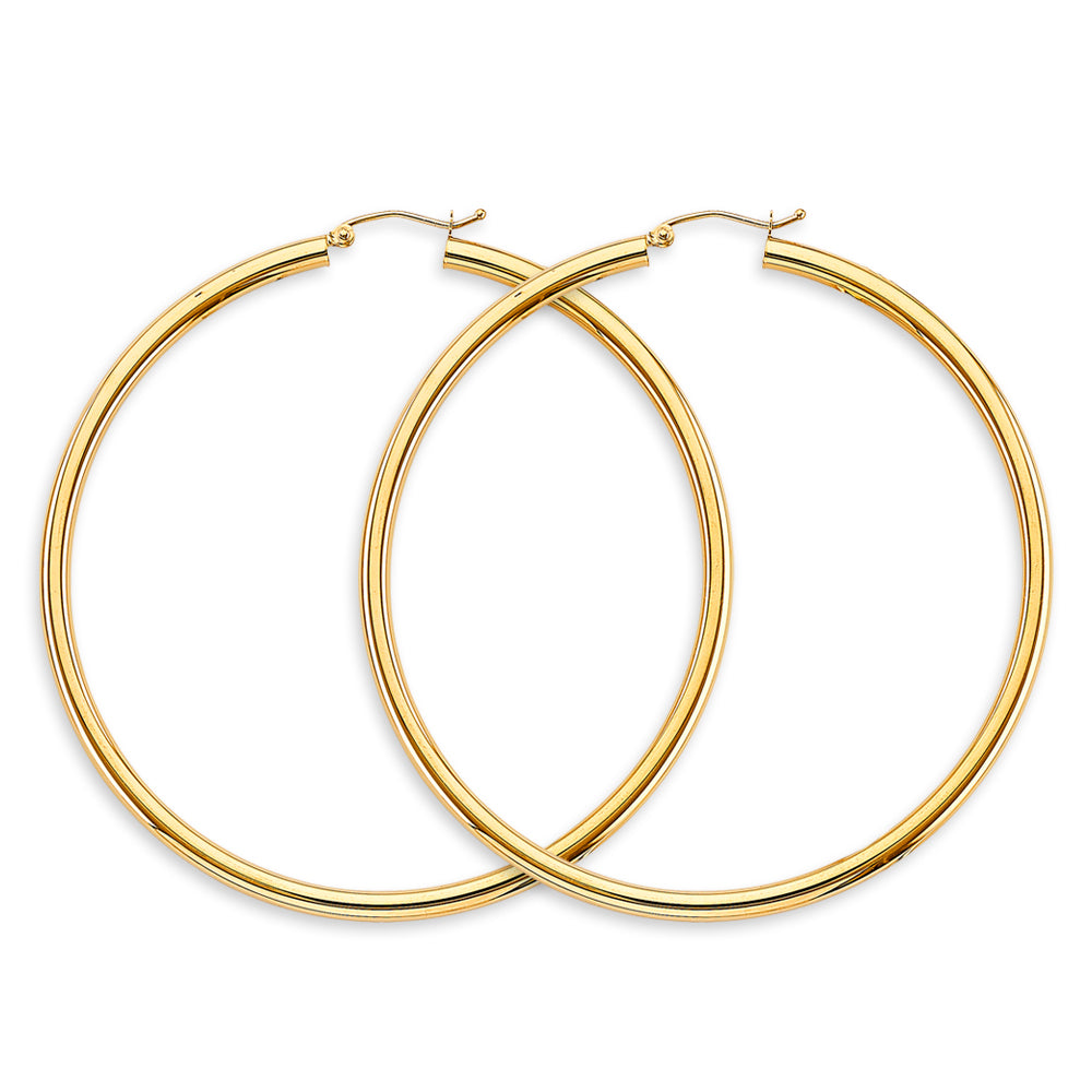 14KY 2mm Big Round Tube Polish Hoop Earrings (ER1732)
