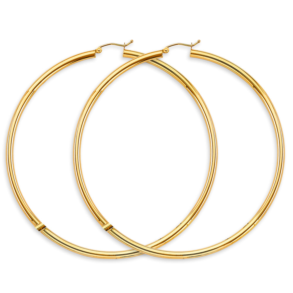 14KY 3mm Budded DC Big Round Tube Hoop Earrings (ER1734)