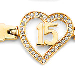 14K 2T CZ 15 Years Heart Bracelet (AB1017)