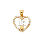 14K 2T CZ 15 Years Heart Pendant (PT1877)