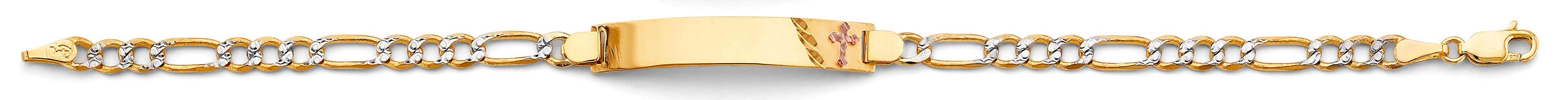 14K 2T Figaro WP Cross ID Bracelet