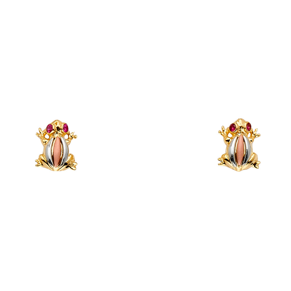 14K 3C CZ Frog Earrings/Set (ER1695)