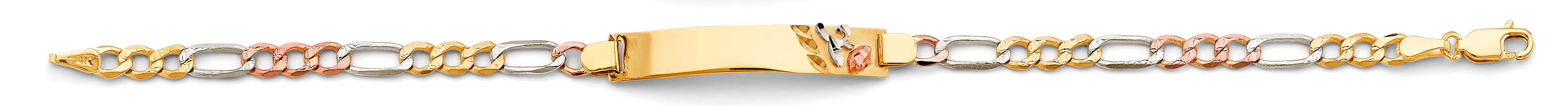 14K 3C Figaro Flower ID Bracelet (AB870)
