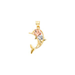 14K 3C Hawaiian Flower Dolphin Pendant (PT2549)