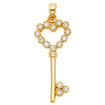 14KY CZ Heart Design Key Pendant