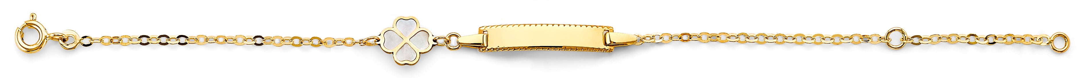 14KY Mother of Pearl Clover Baby ID Bracelet