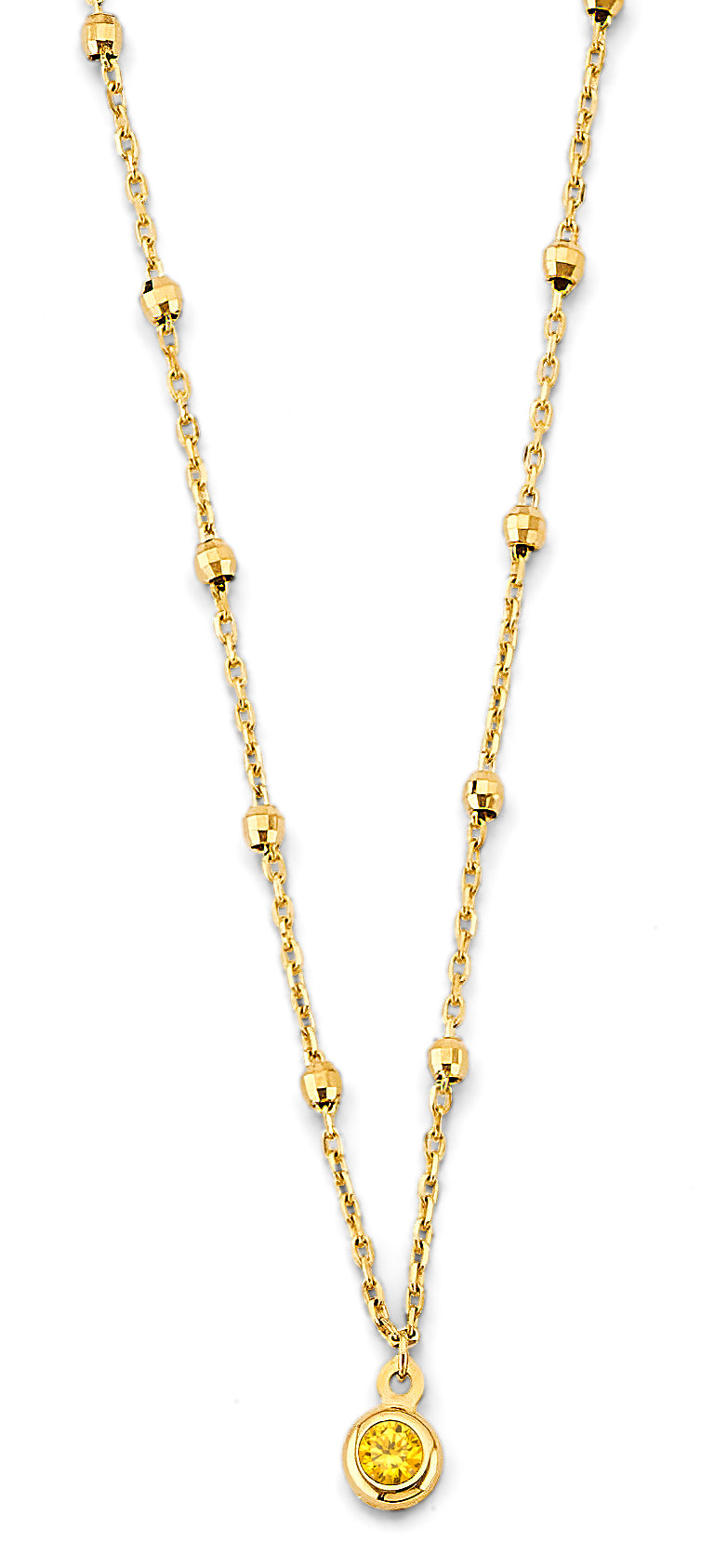 14KY Yellow CZ Charm Bead Necklace (NK484)